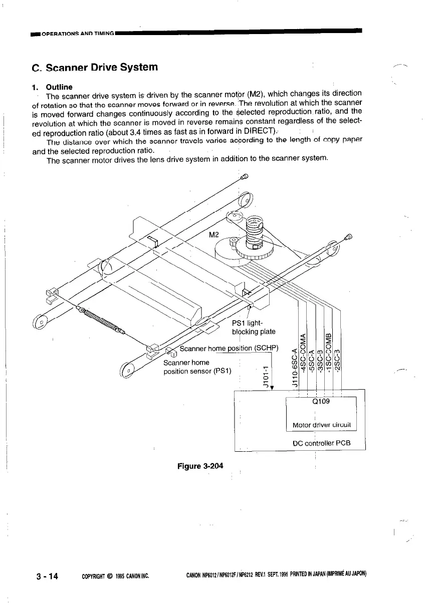 The scanner drive system is driven by the scanner motor (M2), which changes its direction