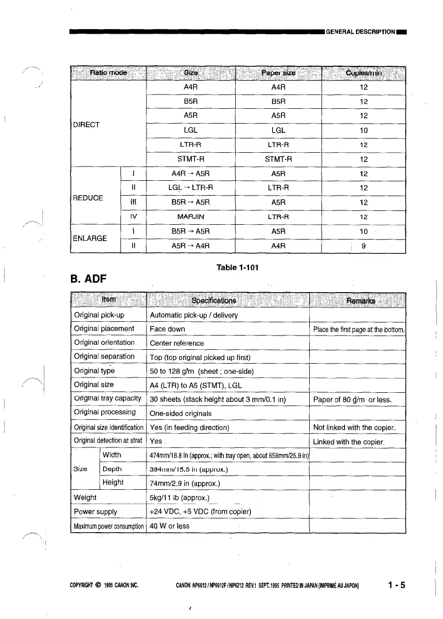 CANON NP6012/NP6012F/NP6212 REV.1 SEPT.1995 PAlNTEDINJAPAN(IMPRIM~AUJAPON)