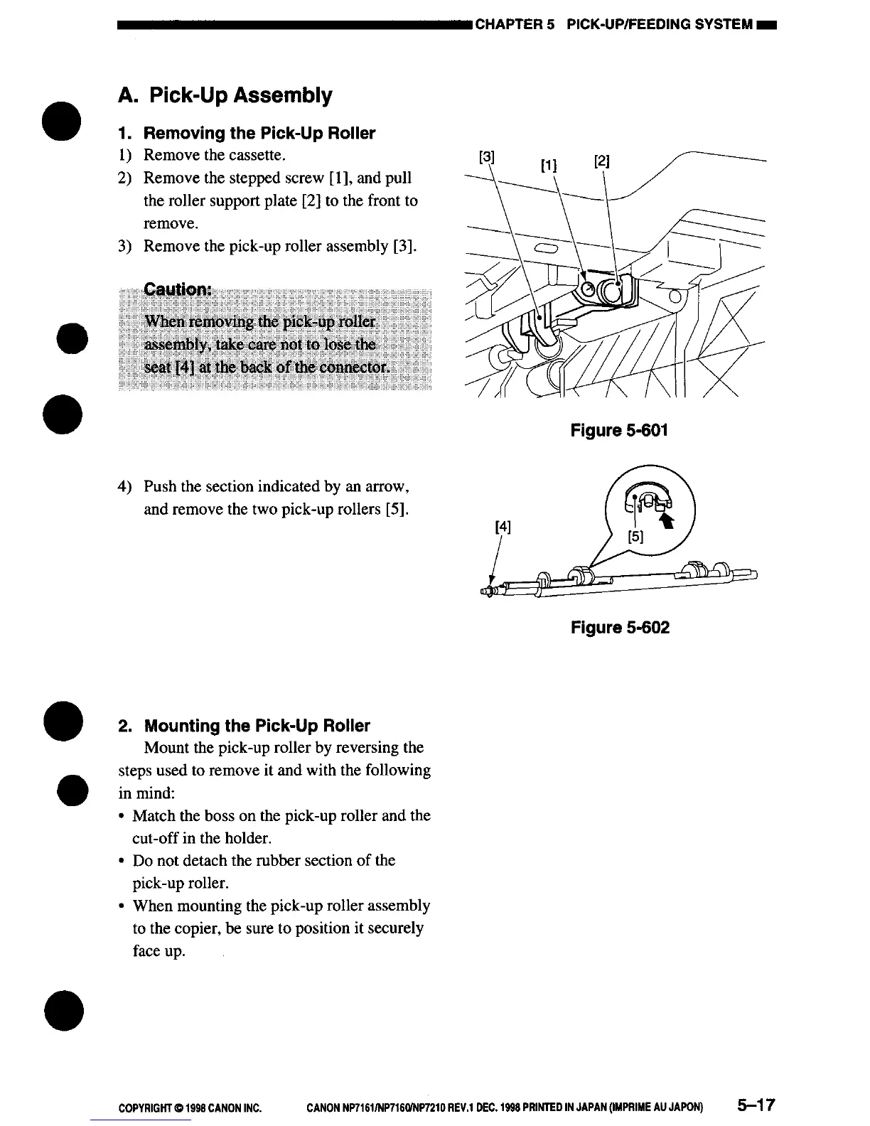 Canon NP7161 - Pick-Up Assembly; Removing the Pick-Up Roller; Mounting the Pick-Up Roller
