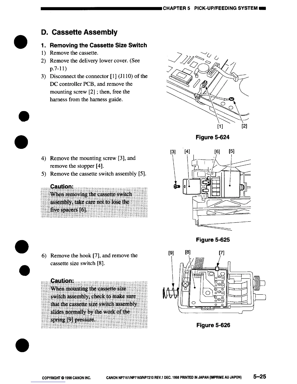 Canon NP7161 - Cassette Assembly; Removing the Cassette Size Switch