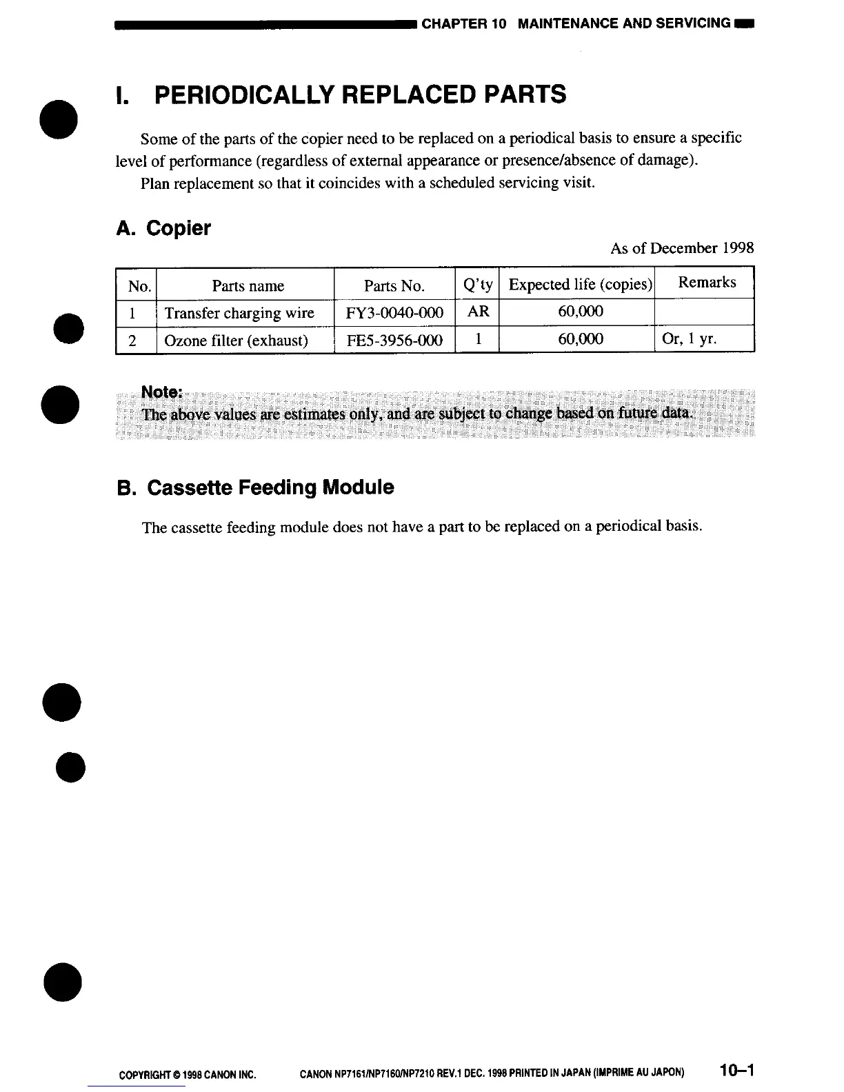 Canon NP7161 - Chapter 10: Maintenance and Servicing; Periodically Replaced Parts