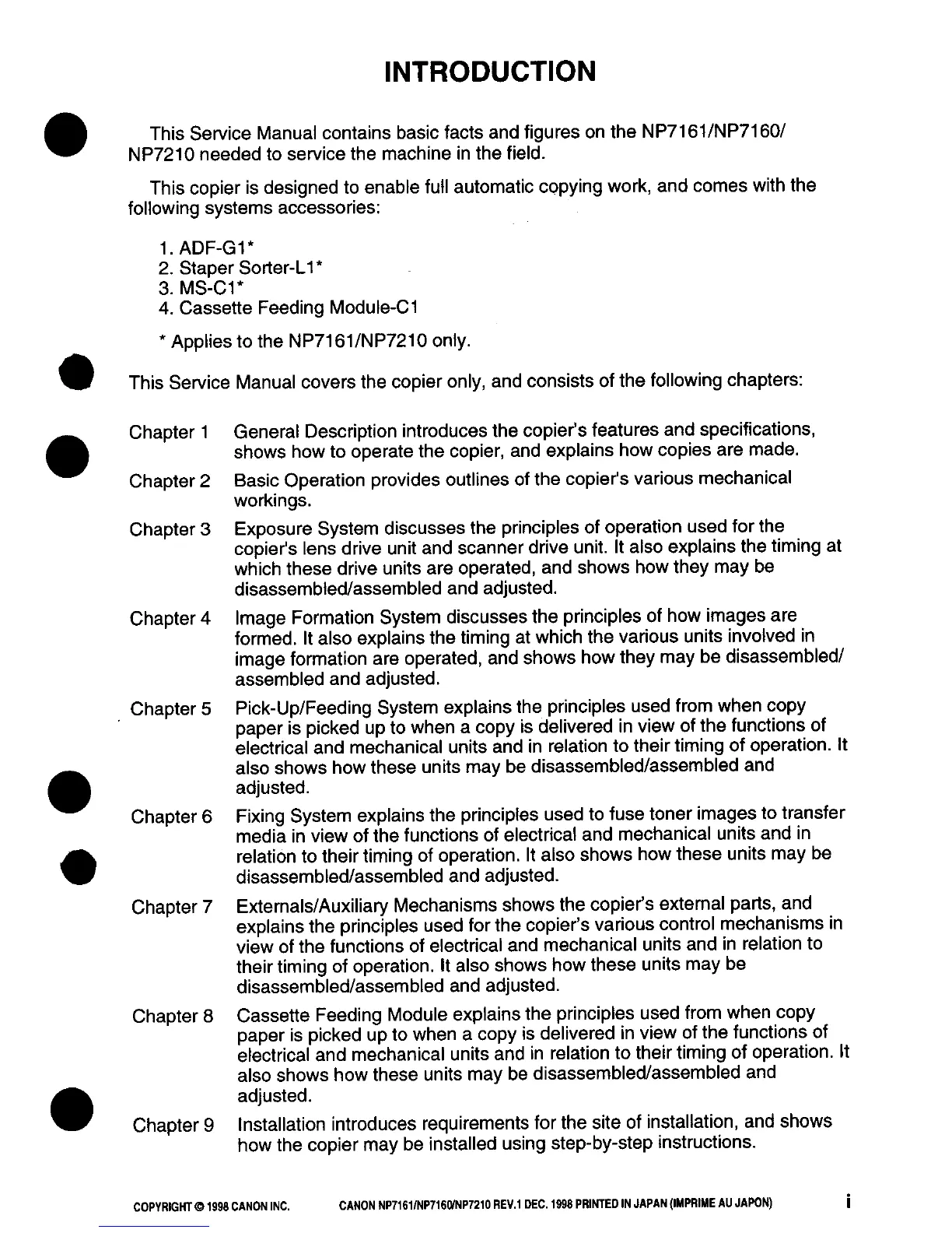 Canon NP7161 - Introduction to Canon NP7161;NP7160;NP7210 Service Manual
