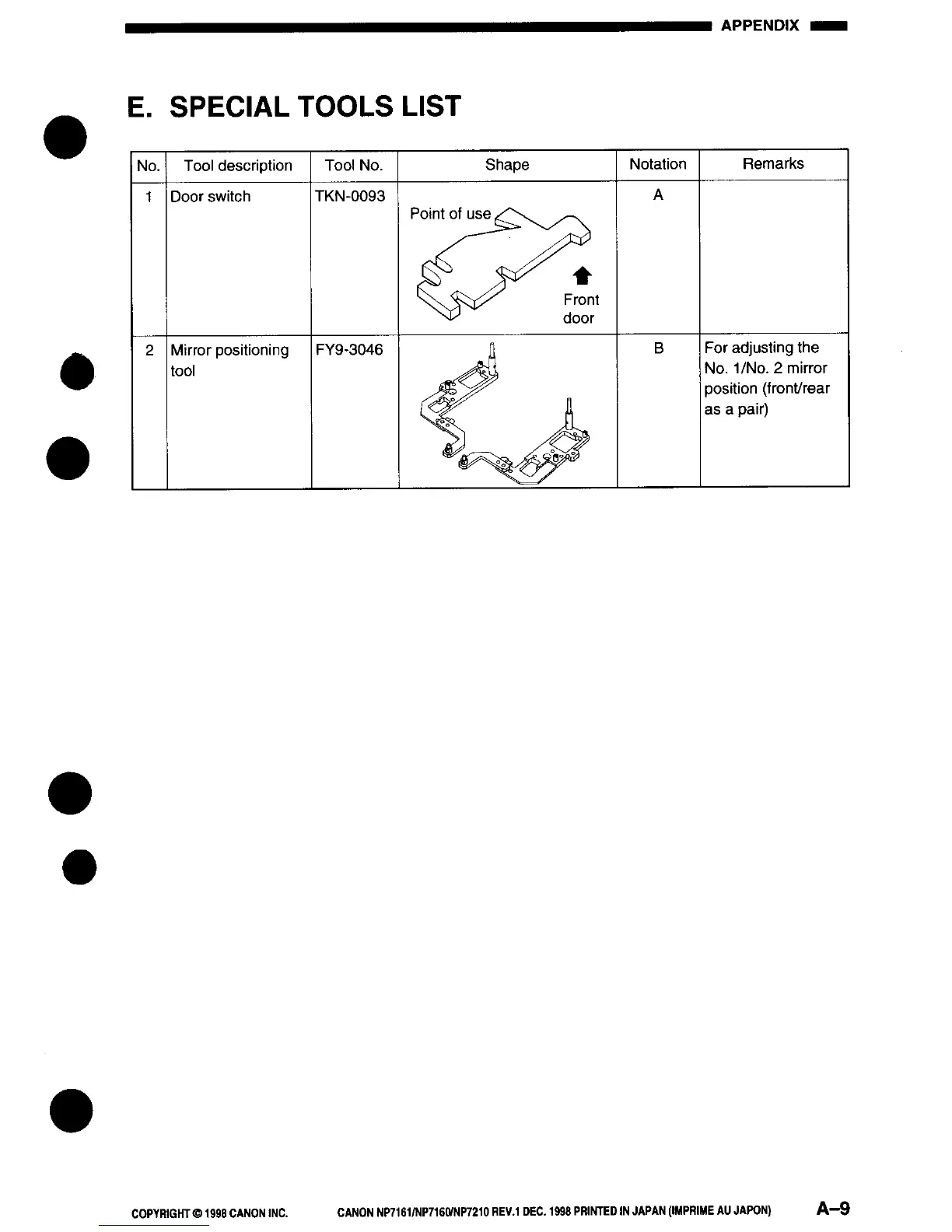 Canon NP7161 - Special Tools List
