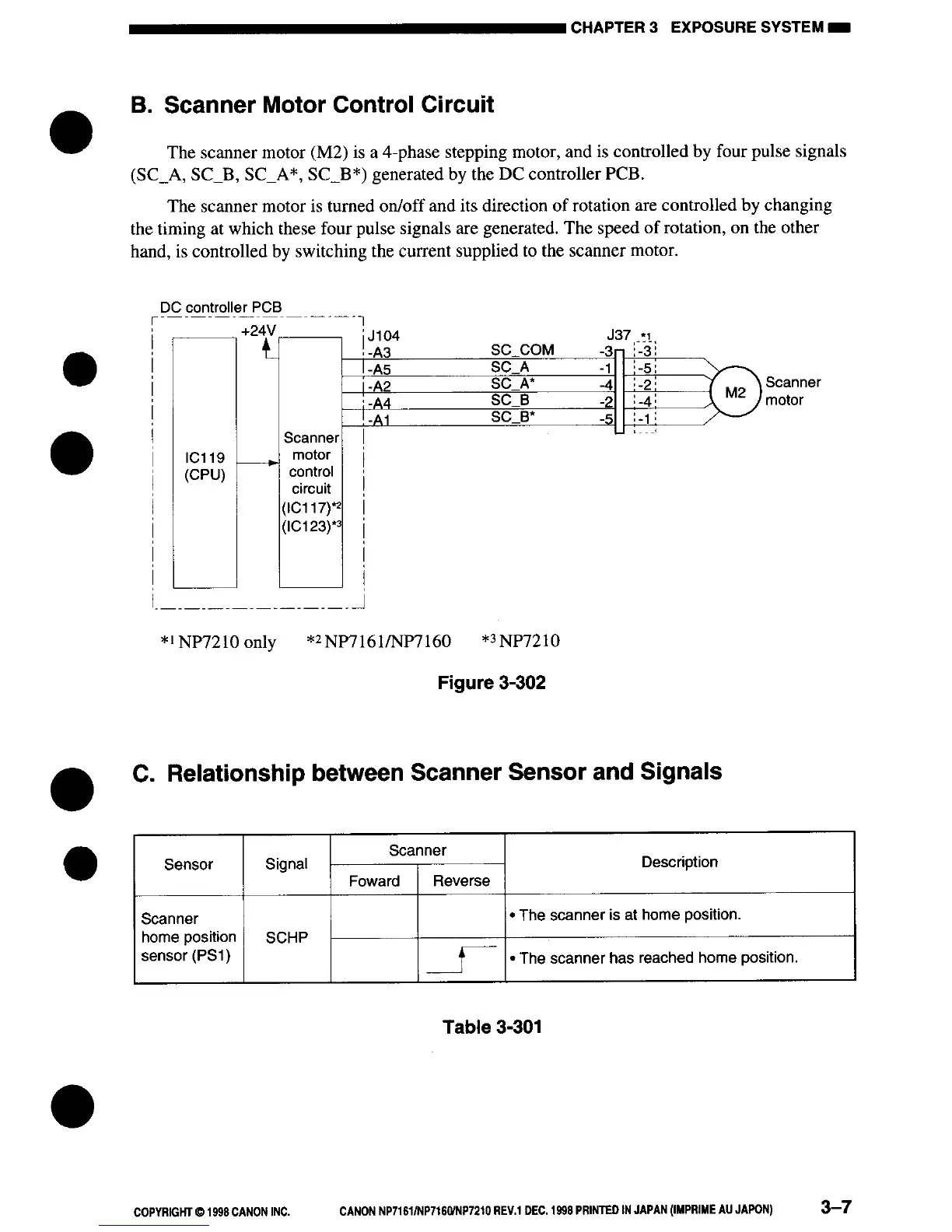 Canon NP7161 - Scanner Motor Control Circuit; Relationship between Scanner Sensor and Signals