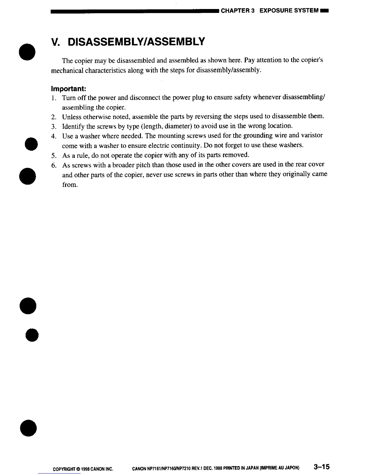 Canon NP7161 - Disassembly and Assembly Procedures