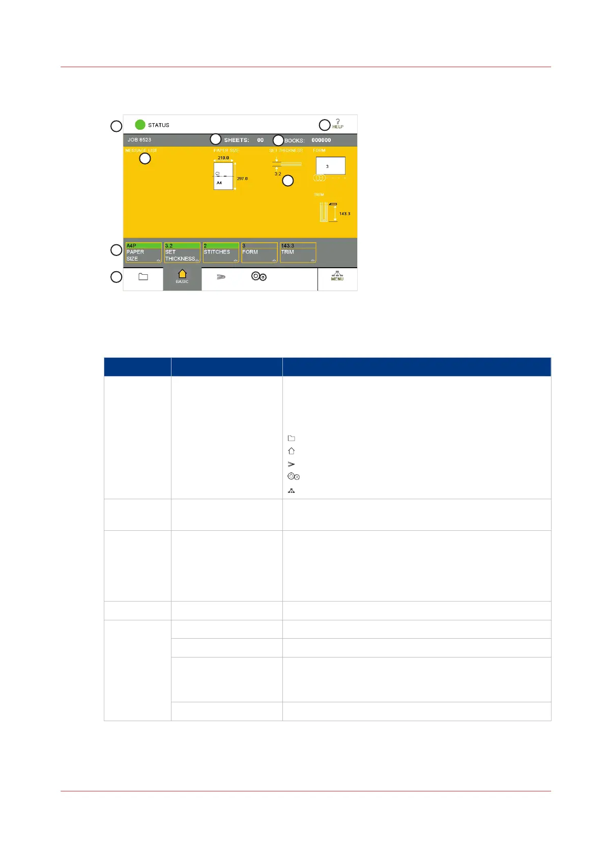 4 Job Mimic The job mimic shows the current machine settings.