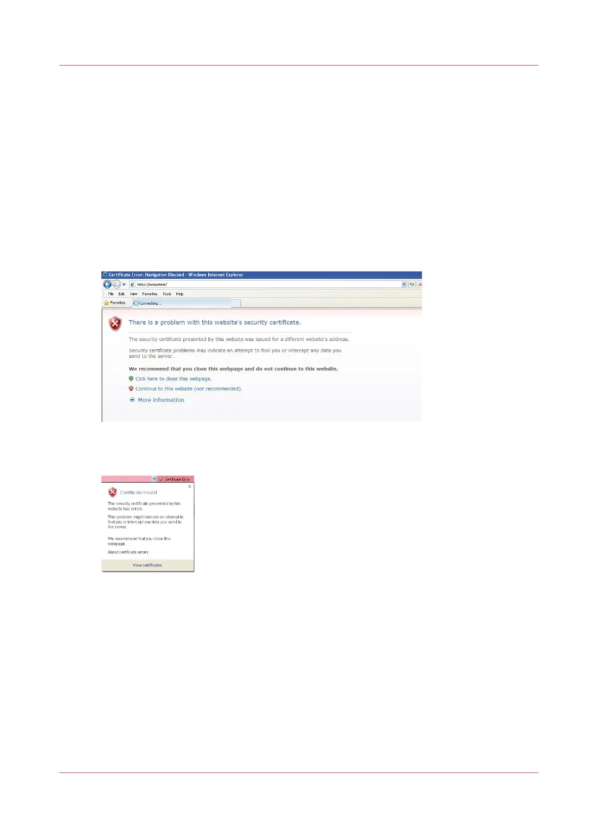 Use the Océ self-signed certificate with Internet Explorer