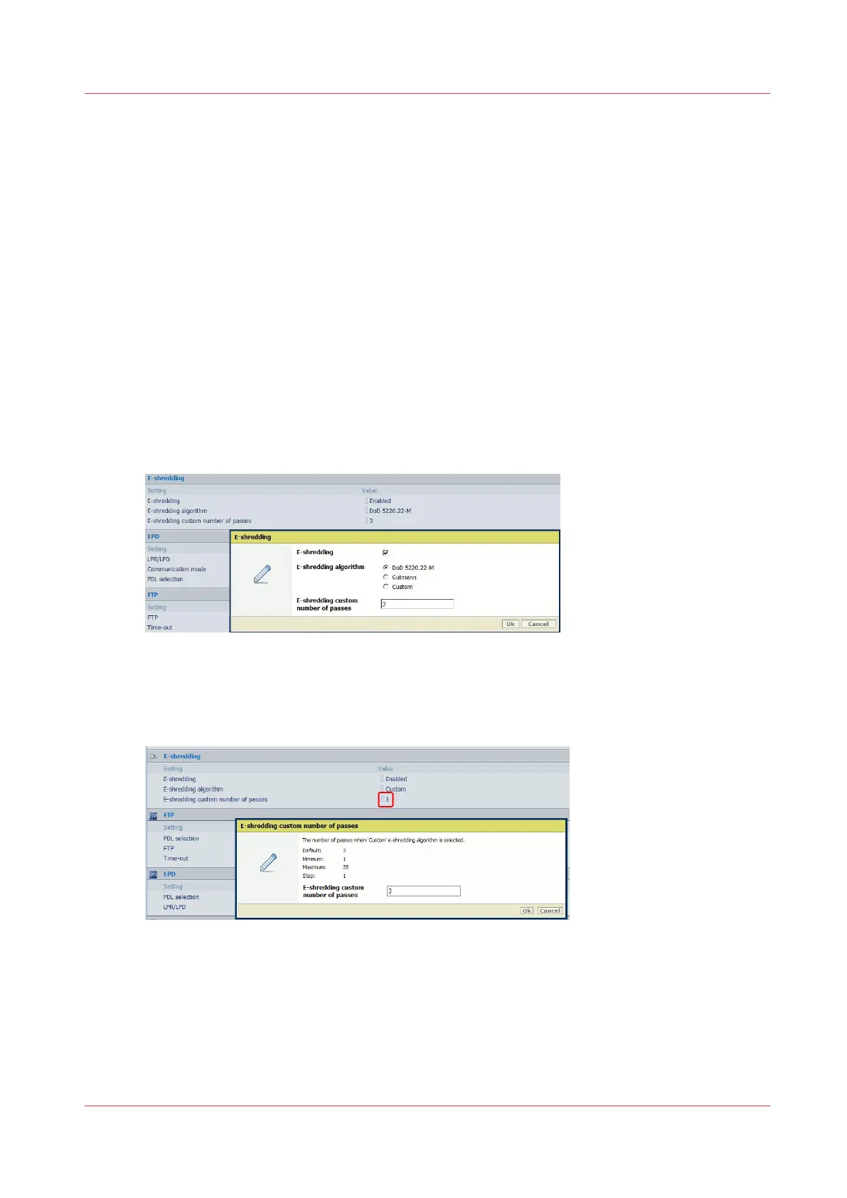 On Océ ColorWave 650 (PP) / 550, click on the value of 'E-shredding custom number of passes' to