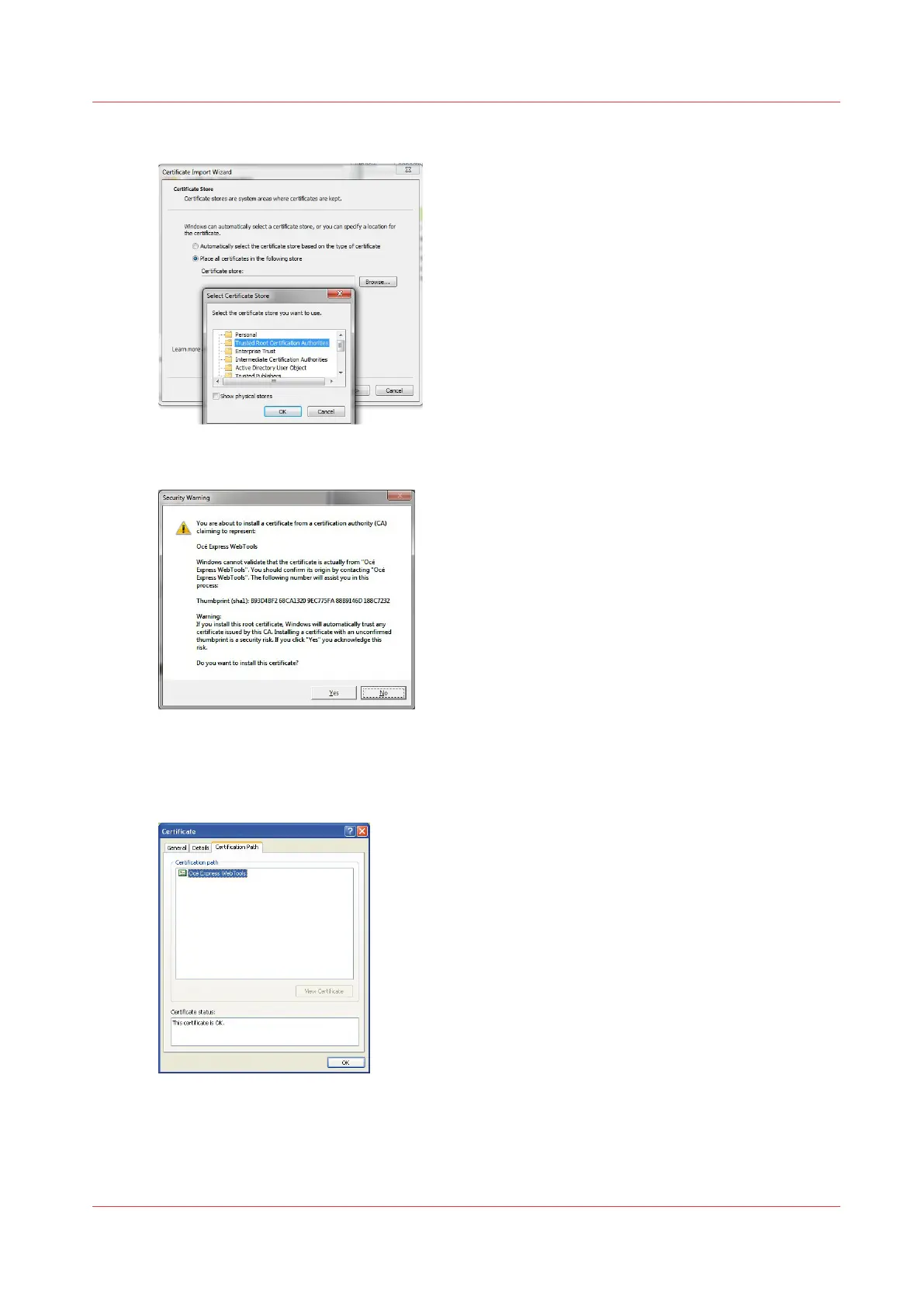 When the import is successful, the 'Océ Express WebTools' Certificate is recognised and its status