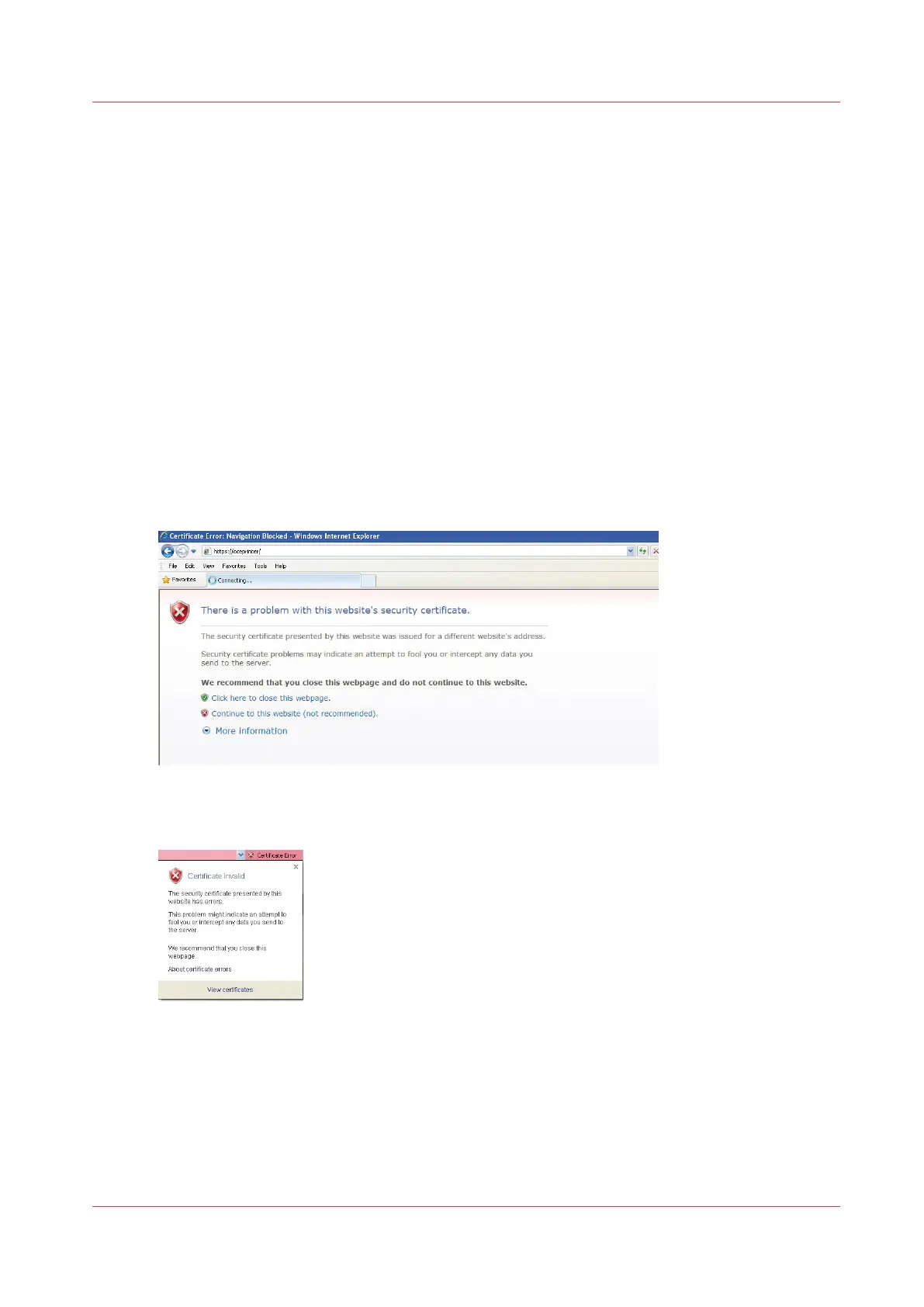 Use the Océ self-signed certificate with Internet Explorer