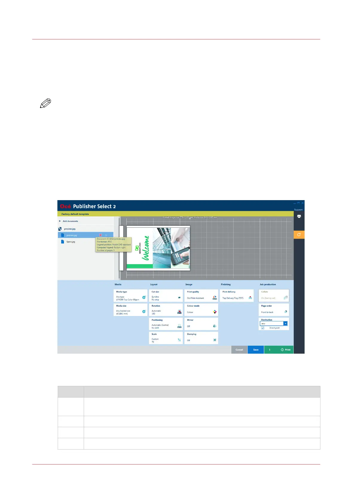 Océ Publisher Select 2 is a job submission application that allows you to create, preview, print,