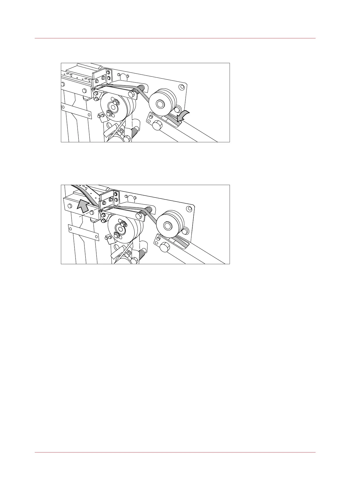 Hold the upper guide plate down and cut the tape at the knife section. (Quickly pull the strip up so