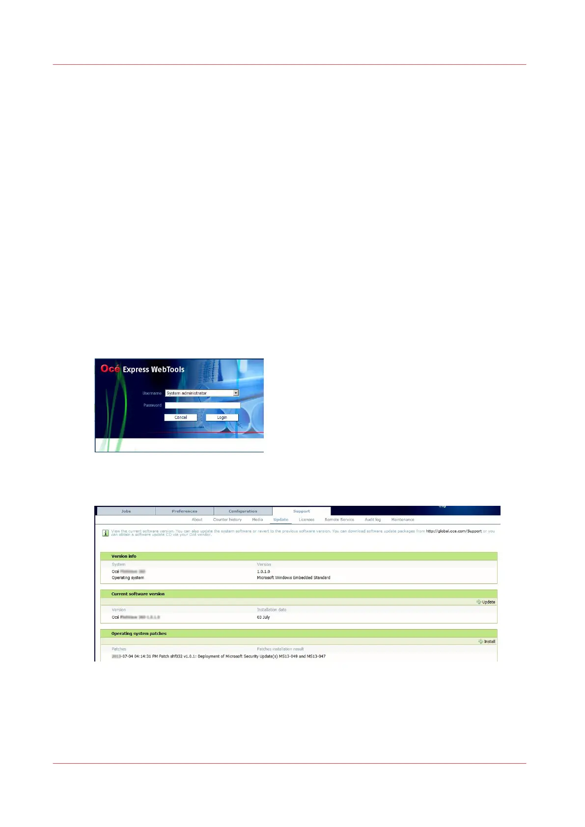 You can install the Océ Remote patches (Security patches) in your Océ system.