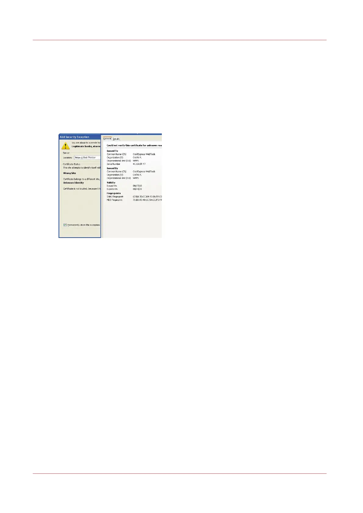 By default the first certificate delivered for the use of HTTPS is an Océ self-signed certificate.