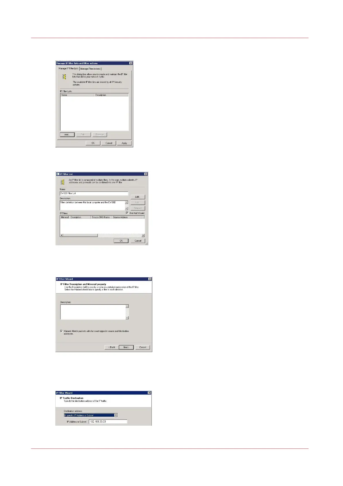 In the 'Manage IP filter lists' tab click 'Add'
