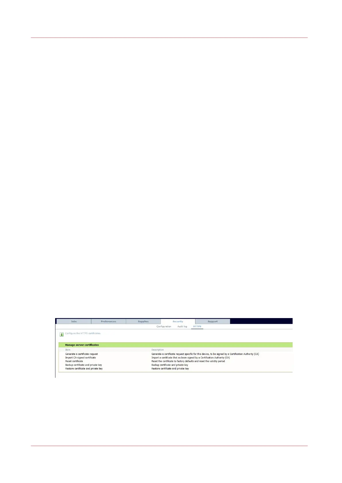 • By default, Océ delivers an Océ self-signed certificate. This certificate provides encryption of