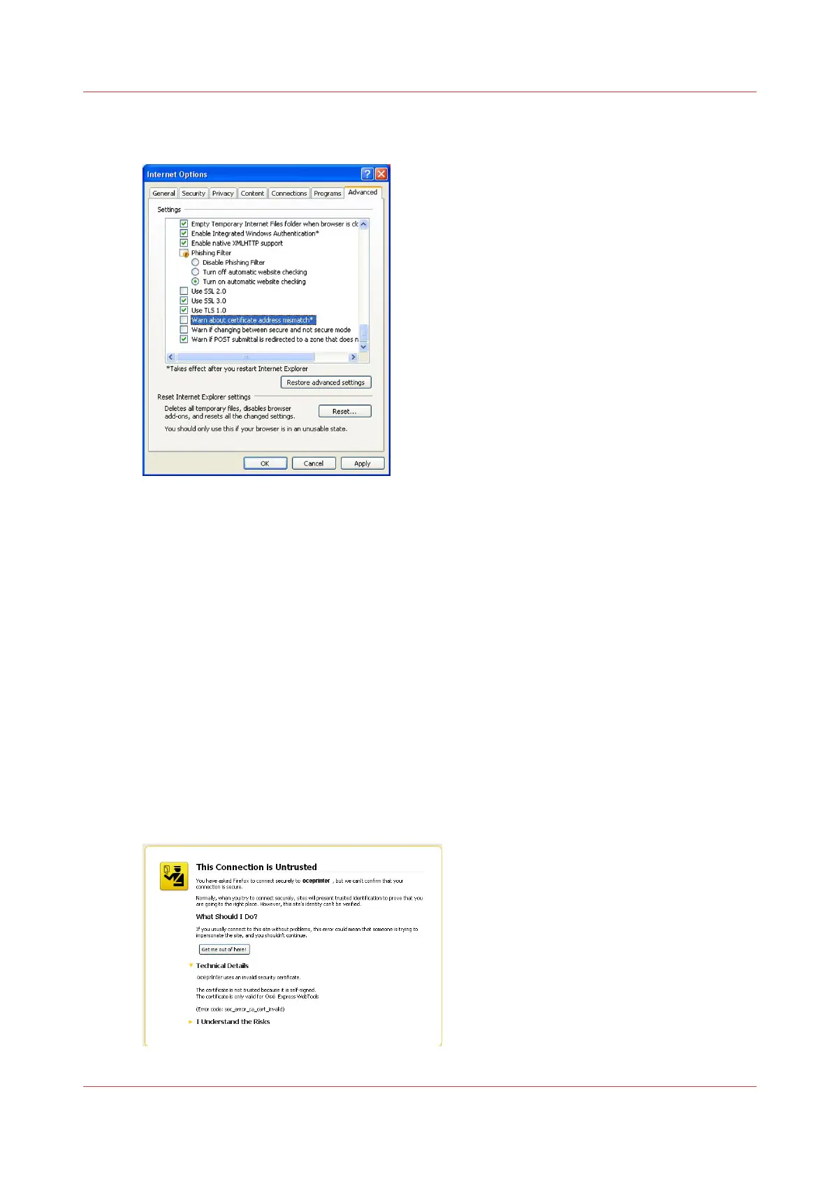 The padlock is displayed on the address bar, Océ self-signed certificate guarantees: