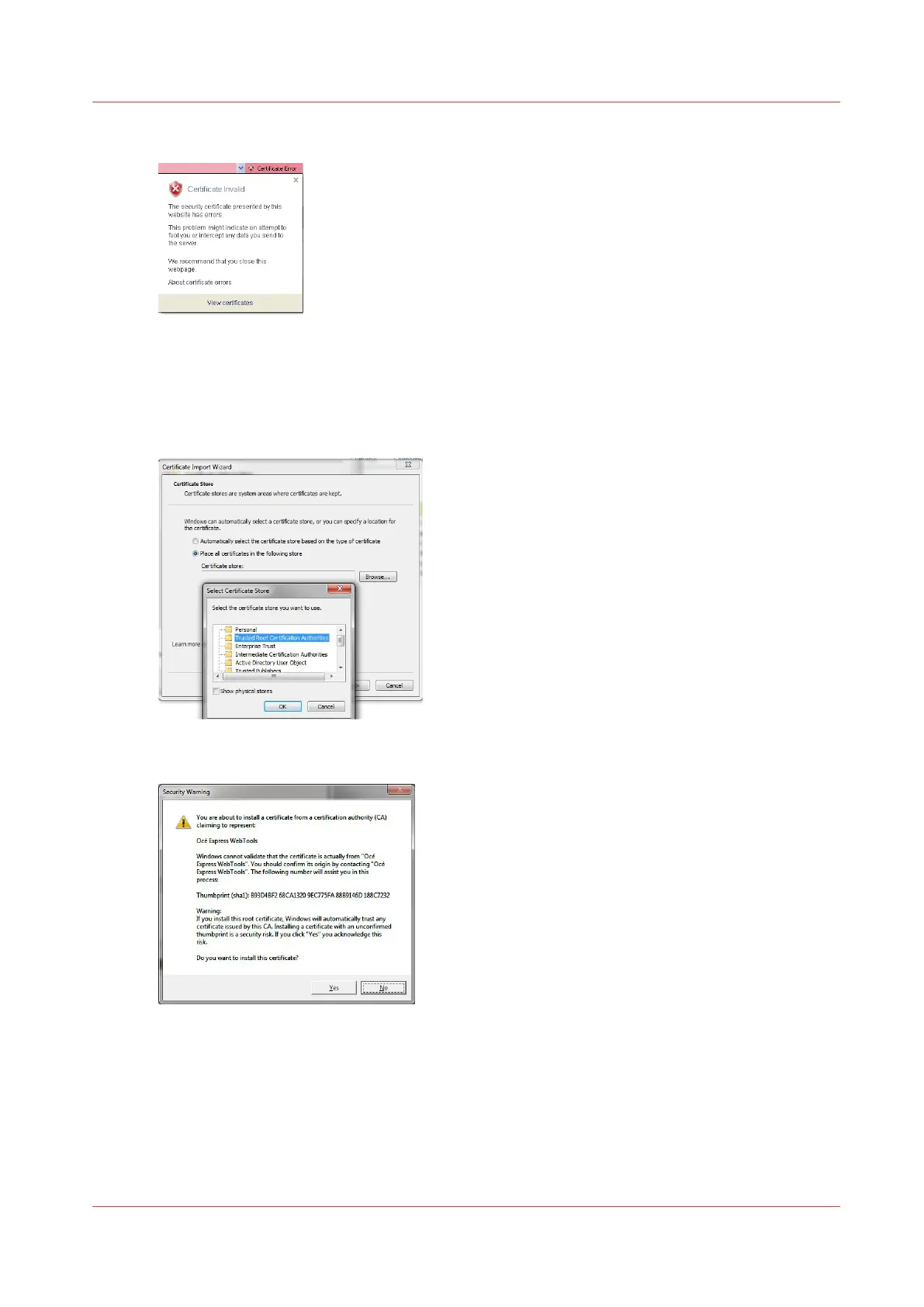 Use the Océ self-signed certificate with Internet Explorer