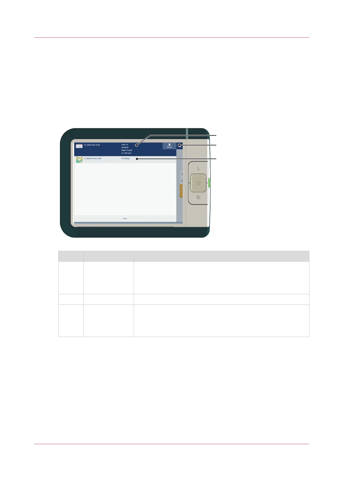 3. job queue Tap on the active job to open the job queue window.