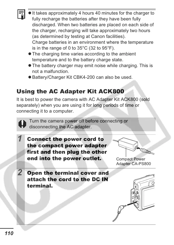 It is best to power the camera with AC Adapter Kit ACK800 (sold