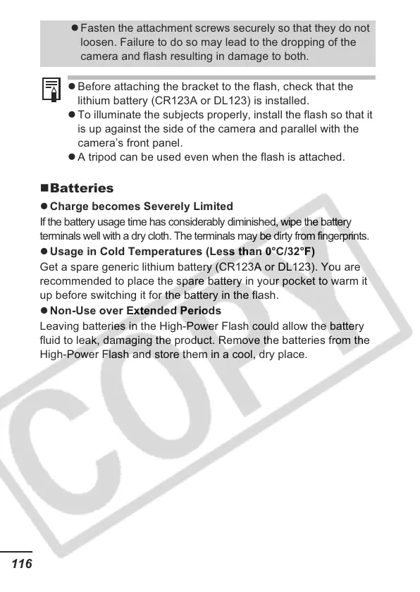 z Before attaching the bracket to the flash, check that the