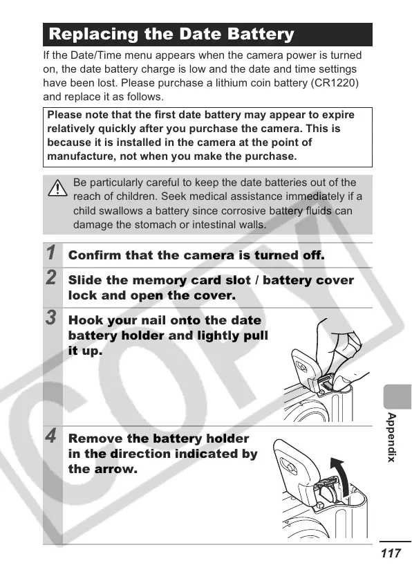 Be particularly careful to keep the date batteries out of the