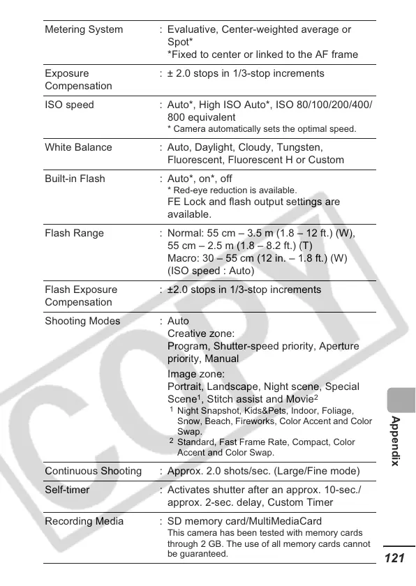 Flash Range : Normal: 55 cm – 3.5 m (1.8 – 12 ft.) (W),