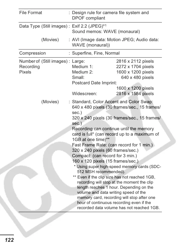 (Movies) : AVI (Image data: Motion JPEG; Audio data: