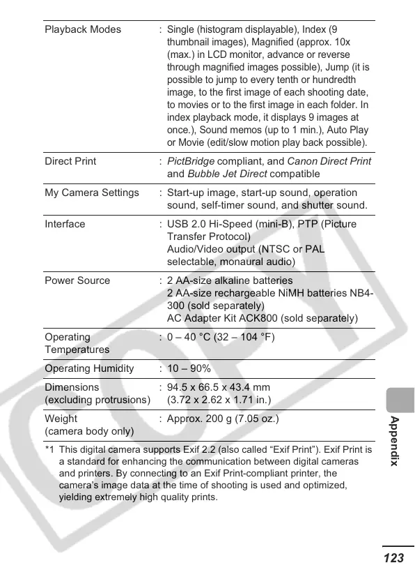 *1 This digital camera supports Exif 2.2 (also called “Exif Print”). Exif Print is