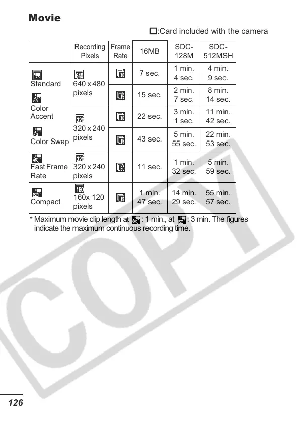 * Maximum movie clip length at : 1 min., at : 3 min. The figures