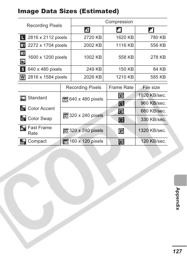 Image Data Sizes (Estimated)
