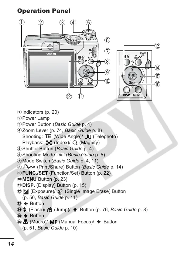 n (Flash)/ (Jump)/ Button (p. 76, Basic Guide p. 8)