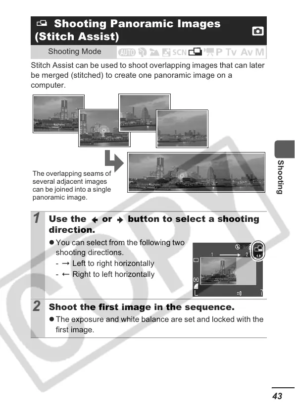 Stitch Assist can be used to shoot overlapping images that can later