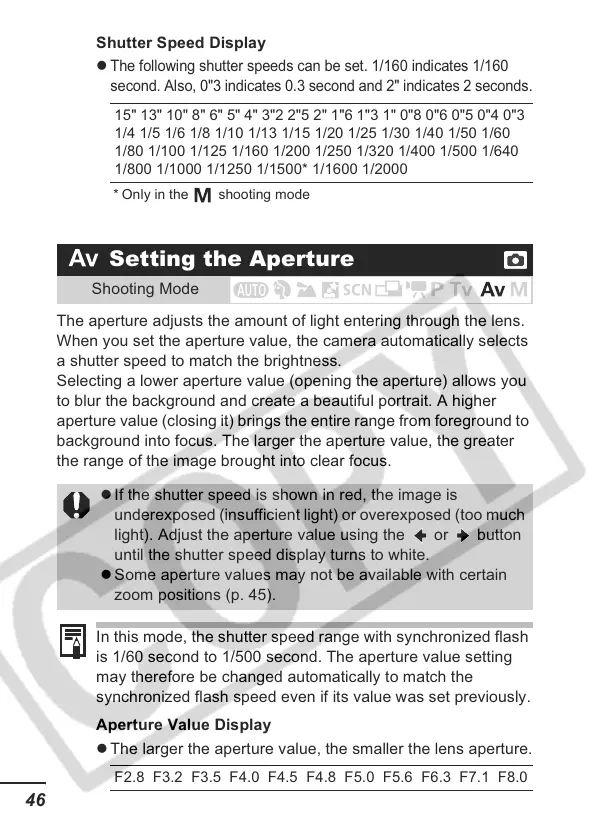 The following shutter speeds can be set. 1/160 indicates 1/160