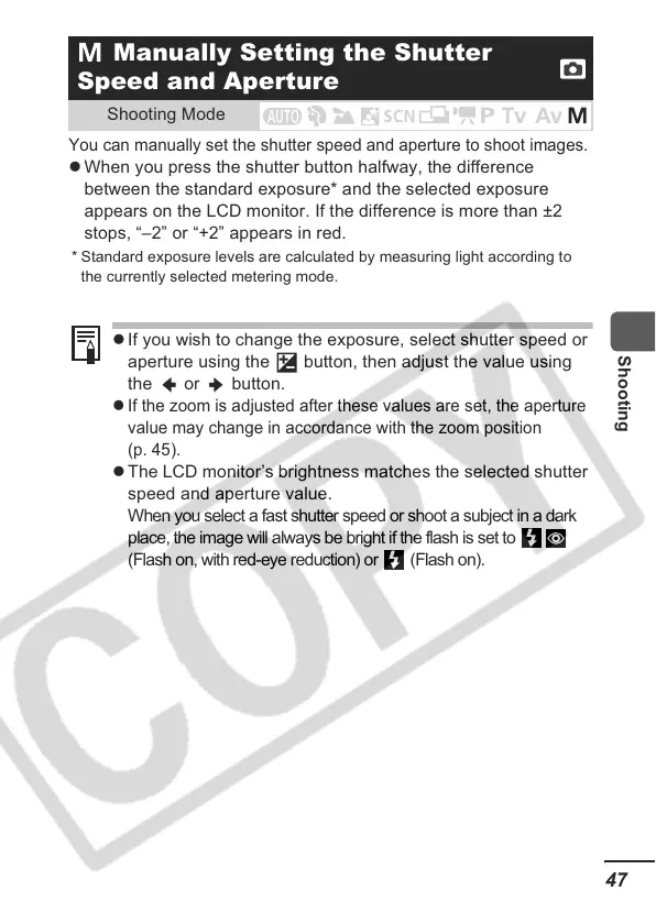 z The LCD monitor’s brightness matches the selected shutter