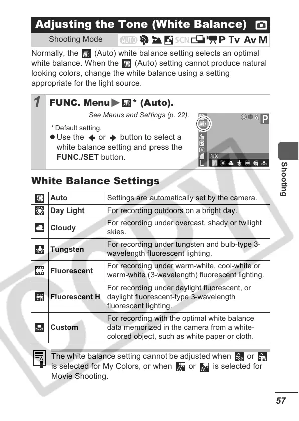 white balance. When the (Auto) setting cannot produce natural