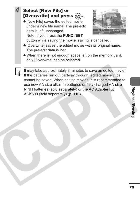 z [Overwrite] saves the edited movie with its original name.
