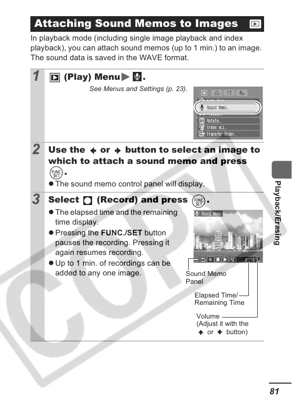 playback), you can attach sound memos (up to 1 min.) to an image.