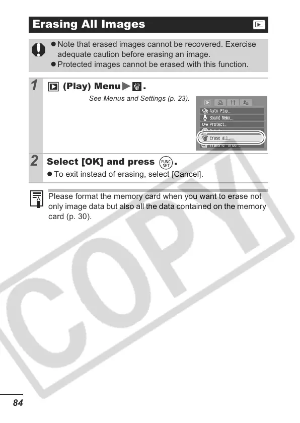 z Protected images cannot be erased with this function.