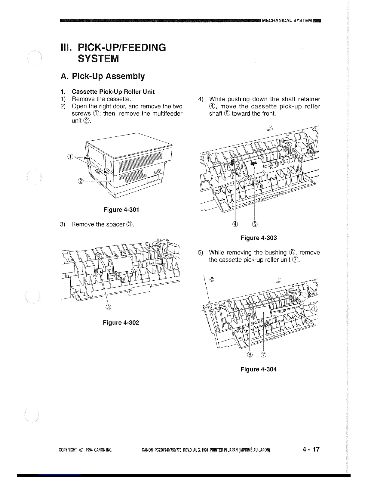 Canon PC720 - III. Pick-Up and Feeding System Assembly