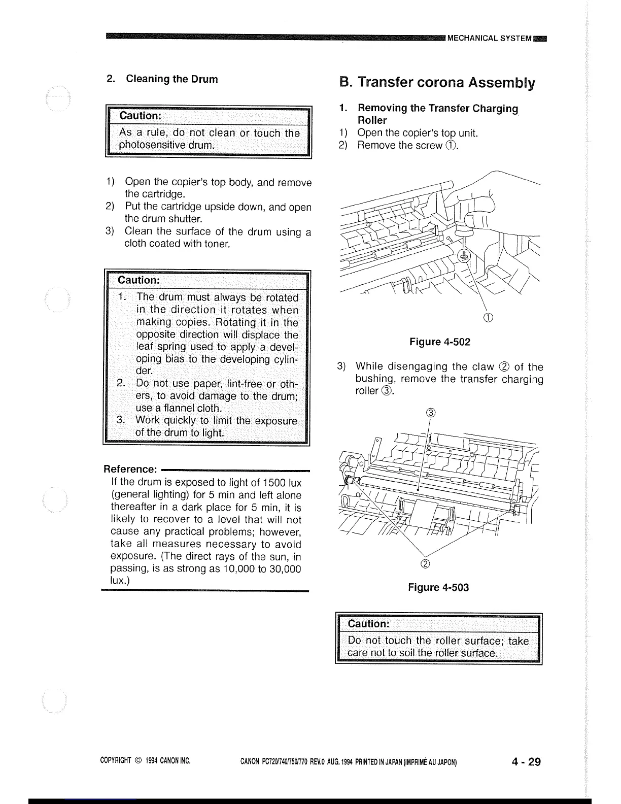 Canon PC720 - Transfer Corona Assembly; Cleaning the Drum; Removing the Transfer Charging Roller