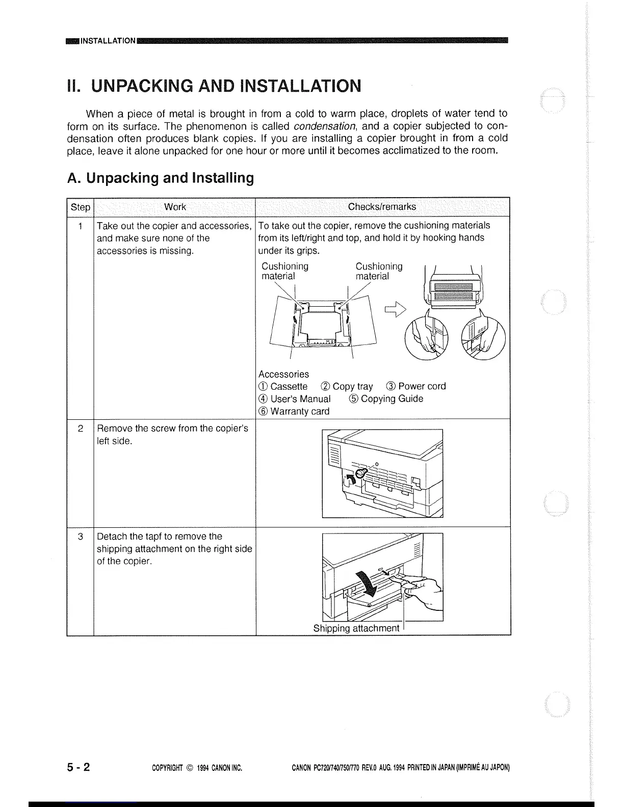 Canon PC720 - II. Unpacking and Initial Setup