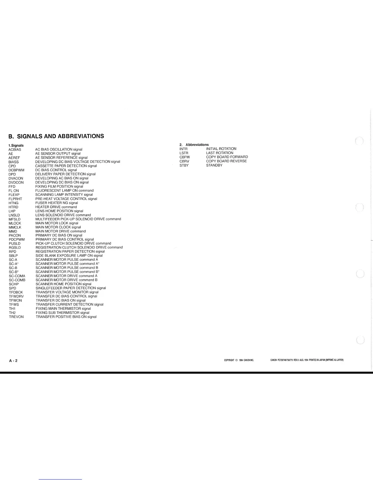 Canon PC720 - B. Signals and Abbreviations List
