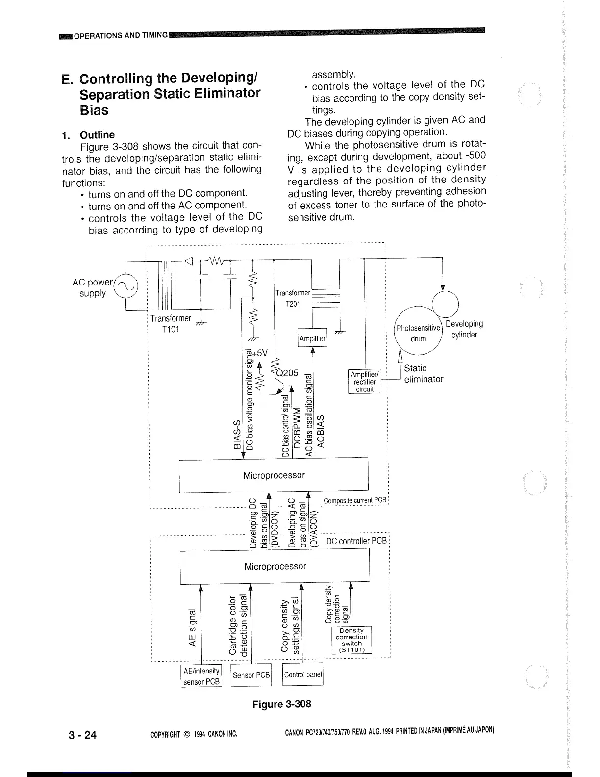 Canon PC720 - Controlling the Developing; Separation Static Eliminator Bias