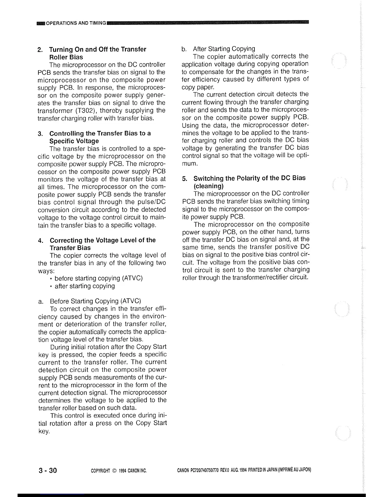 Canon PC720 - Turning on and off the Transfer Roller Bias; Controlling the Transfer Bias to a Specific Voltage; Correcting the Voltage Level of the Transfer Bias; Switching the Polarity of the DC Bias