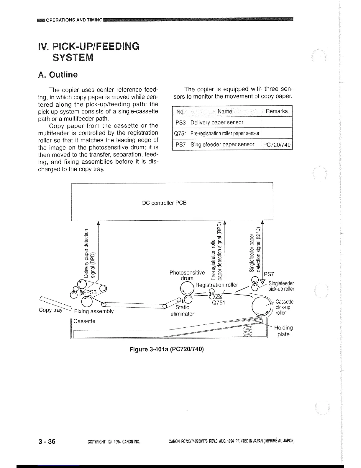 Canon PC720 - Pick-Up;Feeding System; DC Controller PCB