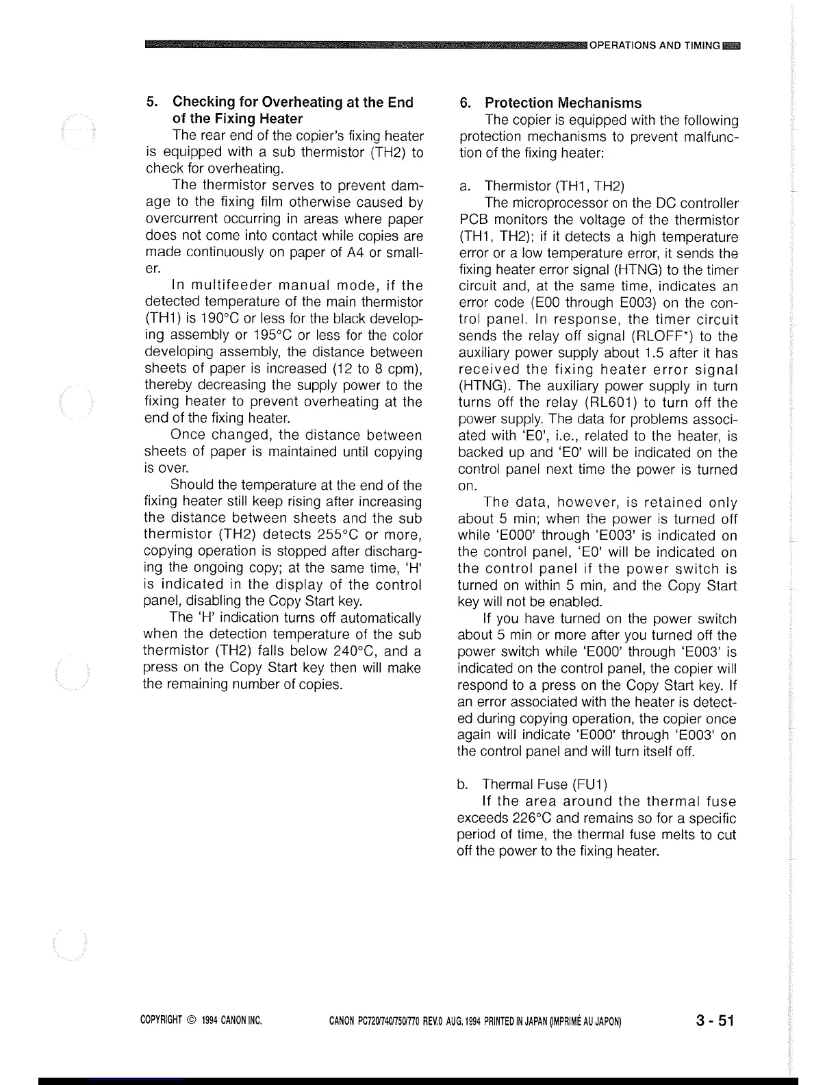 Canon PC720 - Checking for Overheating at the End of the Fixing Heater; Protection Mechanisms; Thermistor; Thermal Fuse
