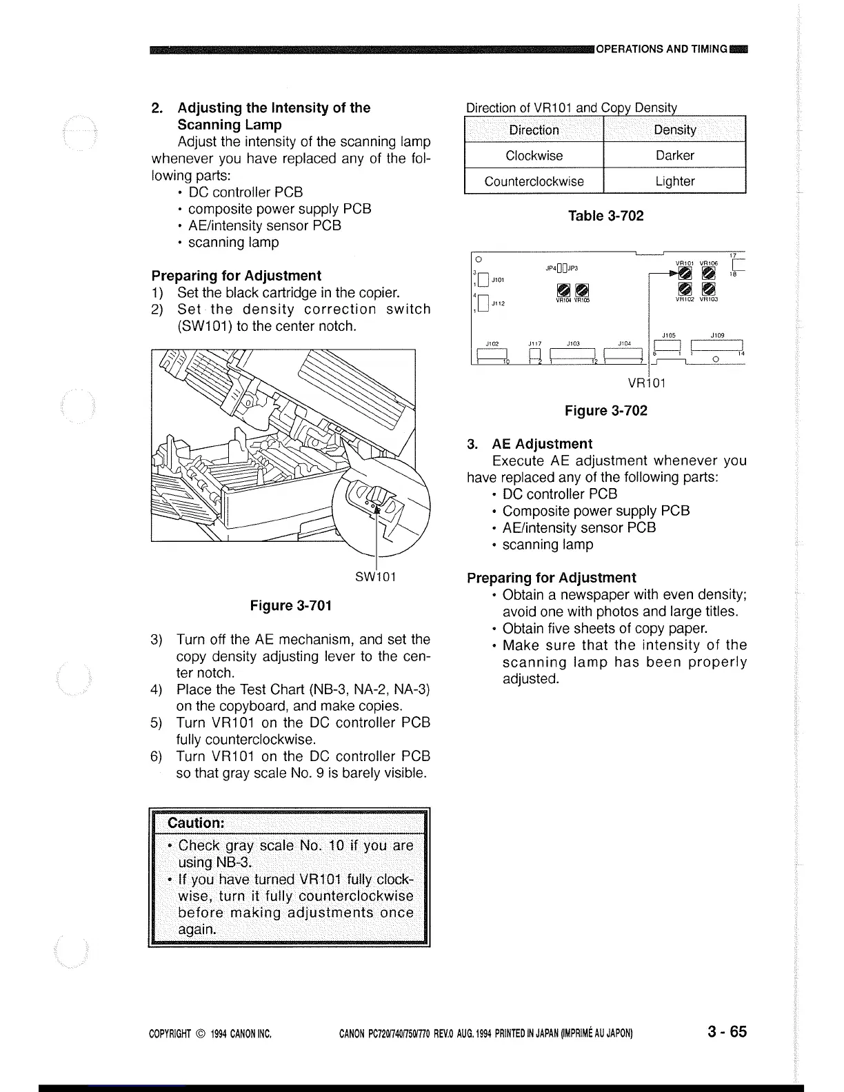 Canon PC720 - Adjusting the Intensity of the Scanning Lamp; Preparing for Adjustment