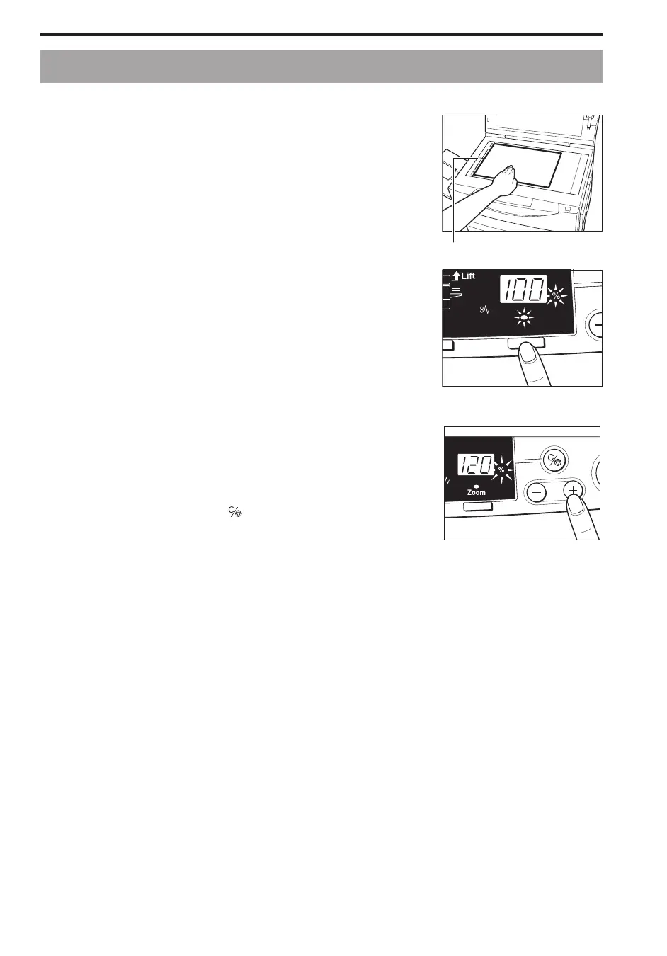 I To set the copy ratio to 120% for example, keep pressing the (+) key