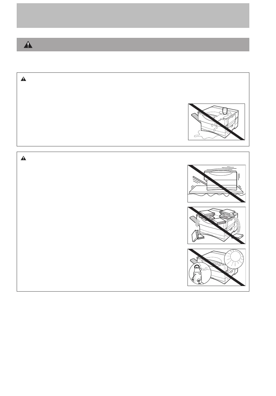 I Do not install the copier near alcohol, paint thinner or other inflammable substances. If